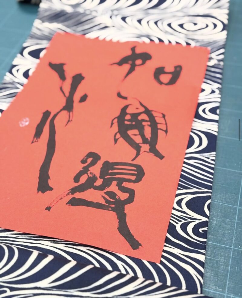 古典的な四字熟語を用いながらも、その表現を極めて抽象的でモダンな墨象に落とし込むことで、「歴史的な深み」と「現代的なおしゃれさ」という、二つの異なる魅力を両立させることができました。